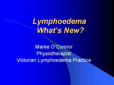 Title: Lymphoedema Whats New