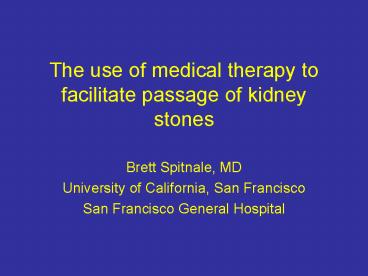 The use of medical therapy to facilitate passage of kidney stones PowerPoint PPT Presentation