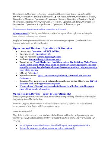 discount coupon - http//crownreviews.com/operation-10k-review-and-b