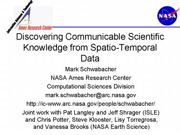 Discovering Communicable Scientific Knowledge from SpatioTemporal Data PowerPoint PPT Presentation