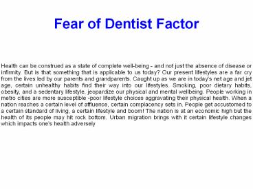 1Fear of Dentist Factor