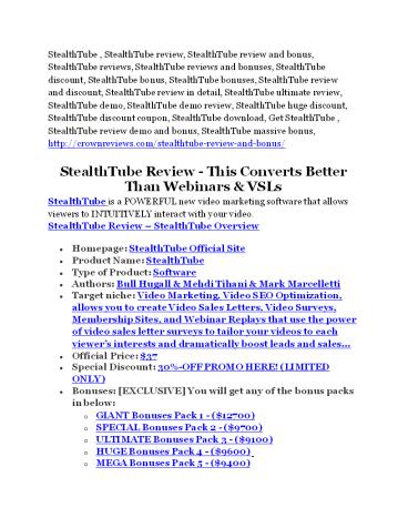 reviews, StealthTube reviews and bonuses,