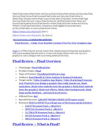 https//vimeo.com/169259189 (In Action) - http//crownreviews.com/pixal-review-and-bonus/