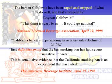 - 75 of California Bar Patrons DONT SMOKE IN BARS