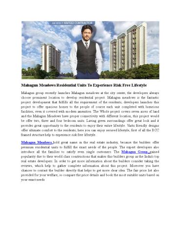 Title: Mahagun Meadows Residential Units to Experience Risk Free Lifestyle