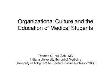 Title: Organizational Culture and the Education of Medical Students