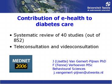 1Contribution of e-health to diabetes care
