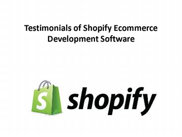 Testimonial of Shopify have always been positive because they are an ecommerce software solution that provides all the characteristics needed by online stores. Being able to use such something encourages online entrepreneurship, as it offers the easiest and most affordable way to set up these stores. Retailers can start providing many online in simply a short while. Plus, they do not need to pay extra for marketing and search engine optimization services because Shopify has integrated all these features along with online shopping cart software. – PowerPoint PPT presentation