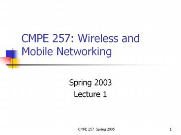 CMPE 257: Wireless and Mobile Networking PowerPoint PPT Presentation