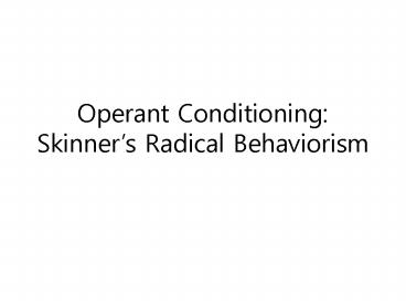 <Notice: Removed> Operant Conditioning: Skinner PowerPoint PPT Presentation