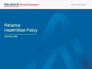 and Health Insurance - Product Offering Reliance HealthWise Policy