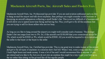 Title: Mackenzie Aircraft Parts, Inc. Aircraft Sales and Finders Fees