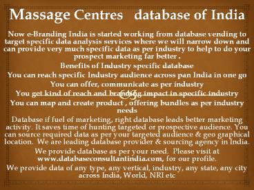 subscriber in Massage Centres industry In India - Website owners, web presence in Massage Centres