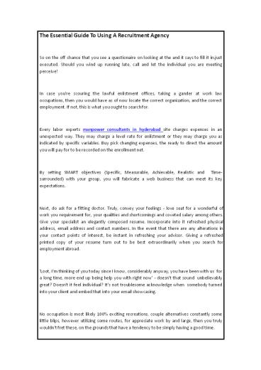 Title: The Essential Guide To Using A Recruitment Agency
