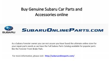 negotiate the best deals for our clients. - Address Subaru Online Parts 500 South Broadway