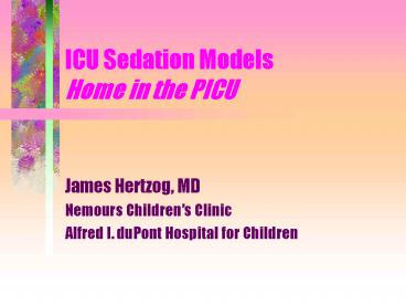 ICU Sedation Models Home in the PICU PowerPoint PPT Presentation