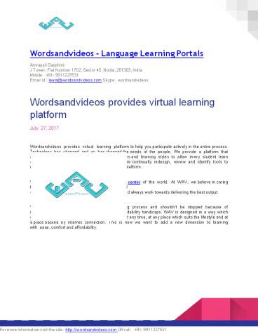 91- 9911227531 Email Id learn_at_wordsandvideos.co