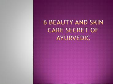 Title: 6 Beauty and Skin Care Secret of Ayurvedic