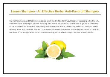 Title: Lemon Shampoo- An Effective Herbal Anti-Dandruff Shampoo