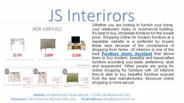 Whether you are looking to furnish your home, your restaurant, lobby or commercial building, it’s best to buy wholesale furniture for the lowest price. Shopping online for modern furniture at a reputable website is a preferred by buyers JS Interiors. – PowerPoint PPT presentation