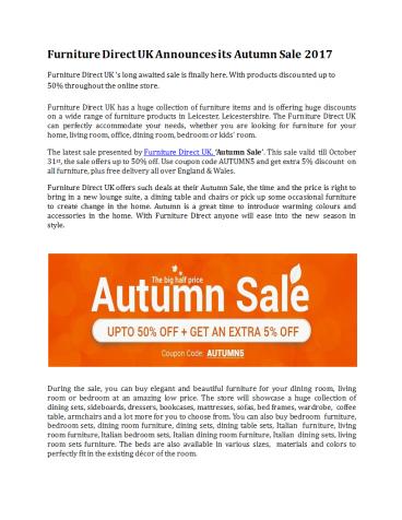 Title: Furniture Direct UK Announces its Autumn Sale 2017