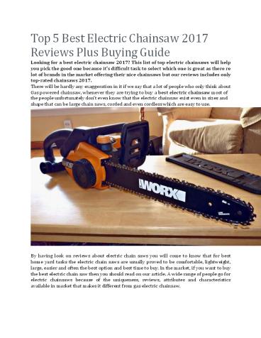 1Top 5 Best Electric Chainsaw 2017 Reviews Plus