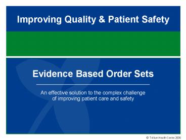 important part of an order set project - Order sets can have a dramatic impact on easily
