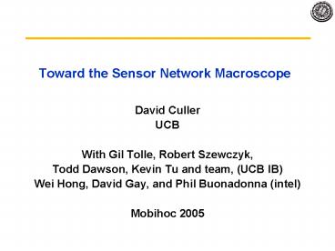 Title: Toward the Sensor Network Macroscope