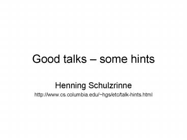 Good talks some hints PowerPoint PPT Presentation