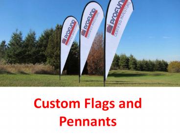 Custom Flags are designed to help organizations with marketing, branding or simply obtaining more exposure. Custom Flag and Pennants provide you the best option to advertise your business indoor as well as outdoor by providing variety of flags including American Flags, Feather Flags, Custom Flags, Custom Flags, Pennant Strings, Banners, Flutter Flags, Patriotic Flags, Festive Flags, Military Flags and Nautical Flags, bow flags, bow banners, Pop up Banners, Retractable Banners. Our custom printed flags allow customers to be as creative as you want without worrying about the cost. This is because you can use an unlimited color on your custom flags. Our flags are made from superior UV resistant imported material. To know more about custom Flag and Pennants products, feel free to visit our online store. – PowerPoint PPT presentation