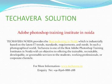 TECHAVERA NOIDA provides the Best toshoning in Noida which is industrially based on the latest IT trends, standards, requirements, and needs. In such a photographical world, Techavera is one of the Best Adobe Photoshop Training Institutes in Noida with an objective to offering the trainable, recruitable, developable, or groomable services to the students, working professionals, or corporate clientele.