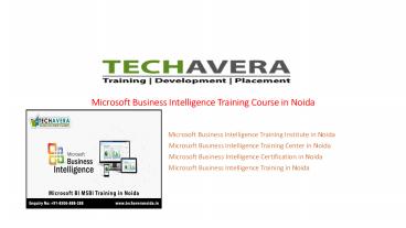 The Techavera is the largest burgeoning Microsoft BI training institute in Noida with the high-end infrastructure and well-facilitated laboratory. The trainees will be conducted with a number of customizable theoretical, practical, and live project sessions in which they will be given the well-defined course modules in an organized manner. Techavera is the Best MSBI Training Center in Noida and is providing a wide array of placement services in different part of the world in the shortest possible time. – PowerPoint PPT presentation