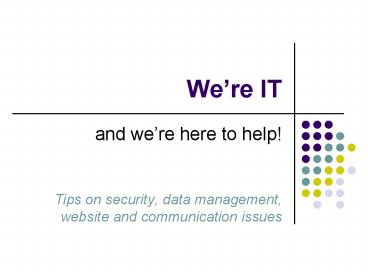 - Tips on security, data management, website and