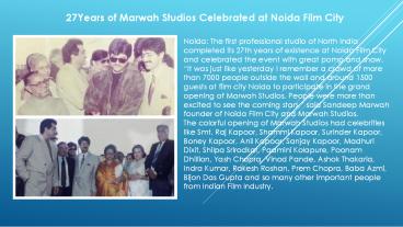 Title: 27Years of Marwah Studios Celebrated at Noida Film City