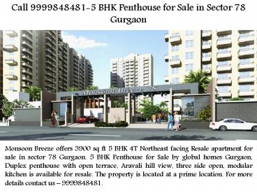 Title: Call 9999848481 5 BHK Penthouse for Sale Sector 78 Gurgaon