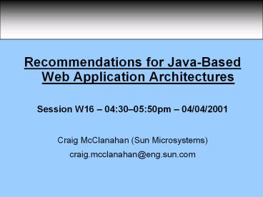 <Notice: Removed> Recommendations for JavaBased Web Application Architectures PowerPoint PPT Presentation