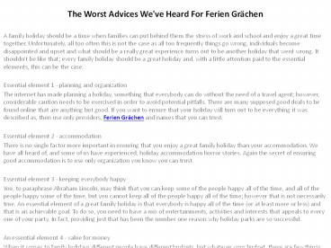 - When it comes to family holidays different people