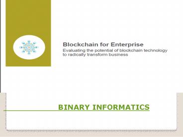 Blockchain means something more than some weird disruptive currency you completely avoided buying when it could have netted you millions, we need to get much more familiar with the actual enterprise platforms being developed, where the true potential of this ledger technology can be unleashed on our enterprises, supply chains and industries. See more: – PowerPoint PPT presentation