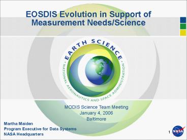 Title: EOSDIS Evolution in Support of Measurement NeedsScience