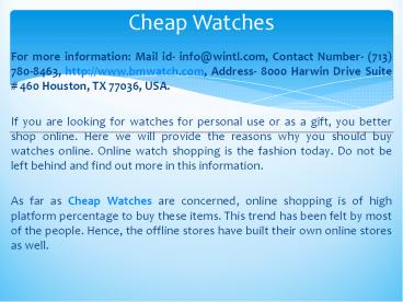 As far as Cheap Watches are concerned, online shopping is of high platform percentage to buy these items. This trend has been felt by most of the people. Hence, the offline stores have built their own online stores as well.