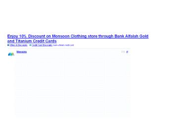 Title: Enjoy 10% Discount on Monsoon Clothing store through Bank Alfalah Gold and Titanium Credit Cards