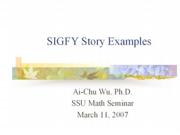 <Notice: Removed> SIGFY Story Examples PowerPoint PPT Presentation