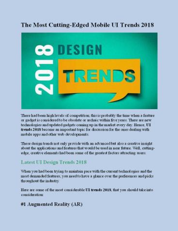 Title: The Most Cutting-Edged Mobile UI Trends 2018