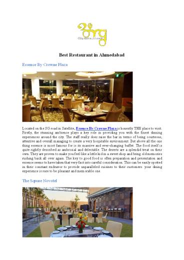 1Best Restaurant in Ahmedabad Essence By Crowne