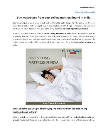 Title: Buy mattresses from best selling mattress in India