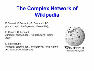 Wikipedia A.C., V. D. P. Servedio, F. Colaiori,