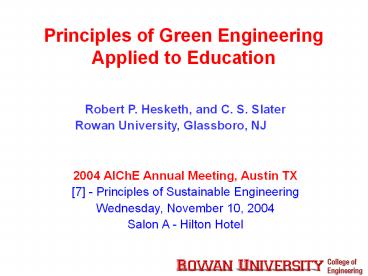 <Notice: Removed> Principles of Green Engineering Applied to Education PowerPoint PPT Presentation