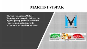 Martini Vispak is an Online Shopping store proudly delivers the highest quality products tailored to your requirements along with exceptional personalized services.