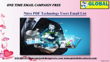 Nitro Pdf Users List from Technology Global B2B Contacts is a well-researched email list, which makes getting connected with potential audience, much easy and cost effective. We guarantee that our Nitro Pdf Mailing List can work wonders once implemented into your marketing planning and campaigns. With complete experience in this arena, today we stand among the forerunners of Nitro Pdf Email List. – PowerPoint PPT presentation