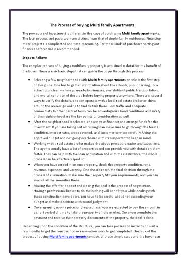 guide the buyer through this process - Selecting a few neighborhoods with Multi family